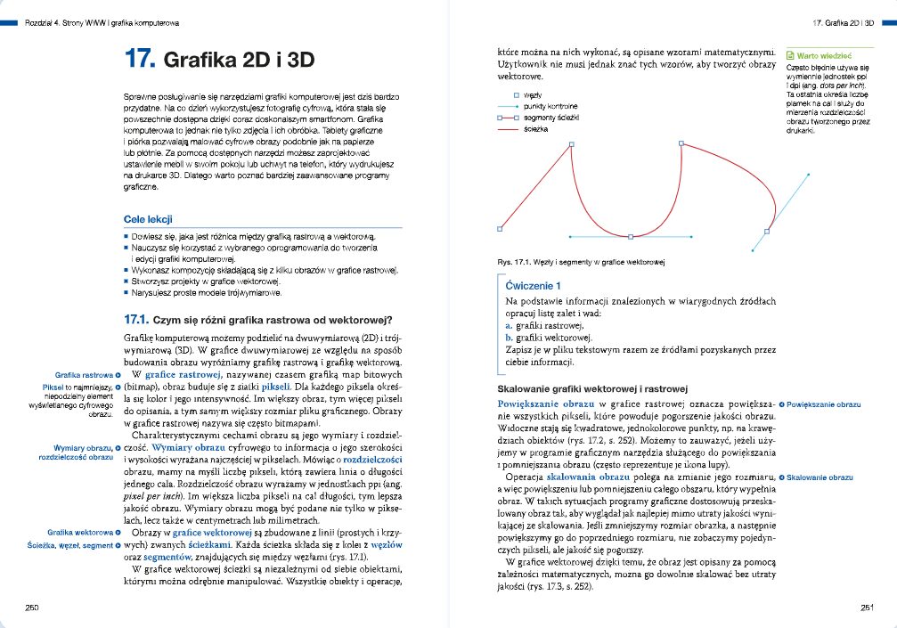1. grafika komputerowa rastrowa 2. grafika wektorowa 3. wektorowa – rastrowa różnice 4. OCR 5. CMYK 6. raster 7. piksel 8. subpiksel 9. gradient 10. teksturowanie 11. renderowanie 12. mapowanie 13. interfejs programu Gimp 14. interfejs programu Inkscape 15. interfejs programu Blender 16. interfejs programu Unity 17. interfejs programu CorelDRAW. 18. interfejs programu Paint 19. podział programów w/w względem rodzaju grafiki (wektorowa czy rastrowa) 20. popularne rozszerzenia plików graficznych 21. interfejsy karty graficznej