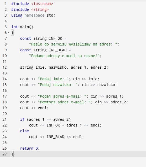 Na początku programu powinien być ten zapis biblioteki