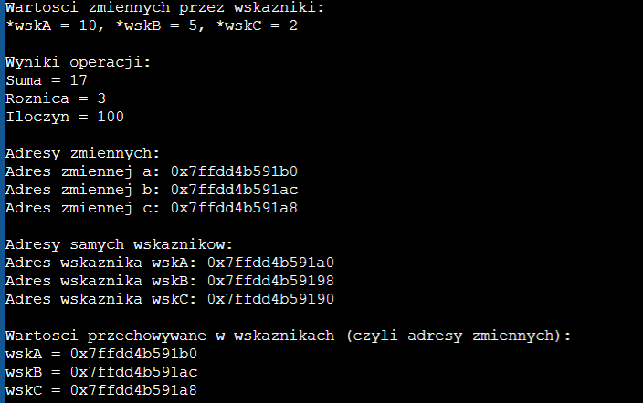 Wynik na konsoli przy prawidłowym wstawieniu danych przy prawidłowo działającym programie: