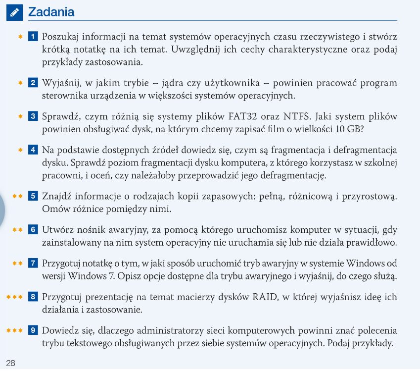 B. Znajdź w Internecie i opracuj w formie dokumentu w edytorze tekstu historię systemu (podstawowe informacje), dalej - charakterystyczne cechy systemu oraz jego wady i jego zalety.